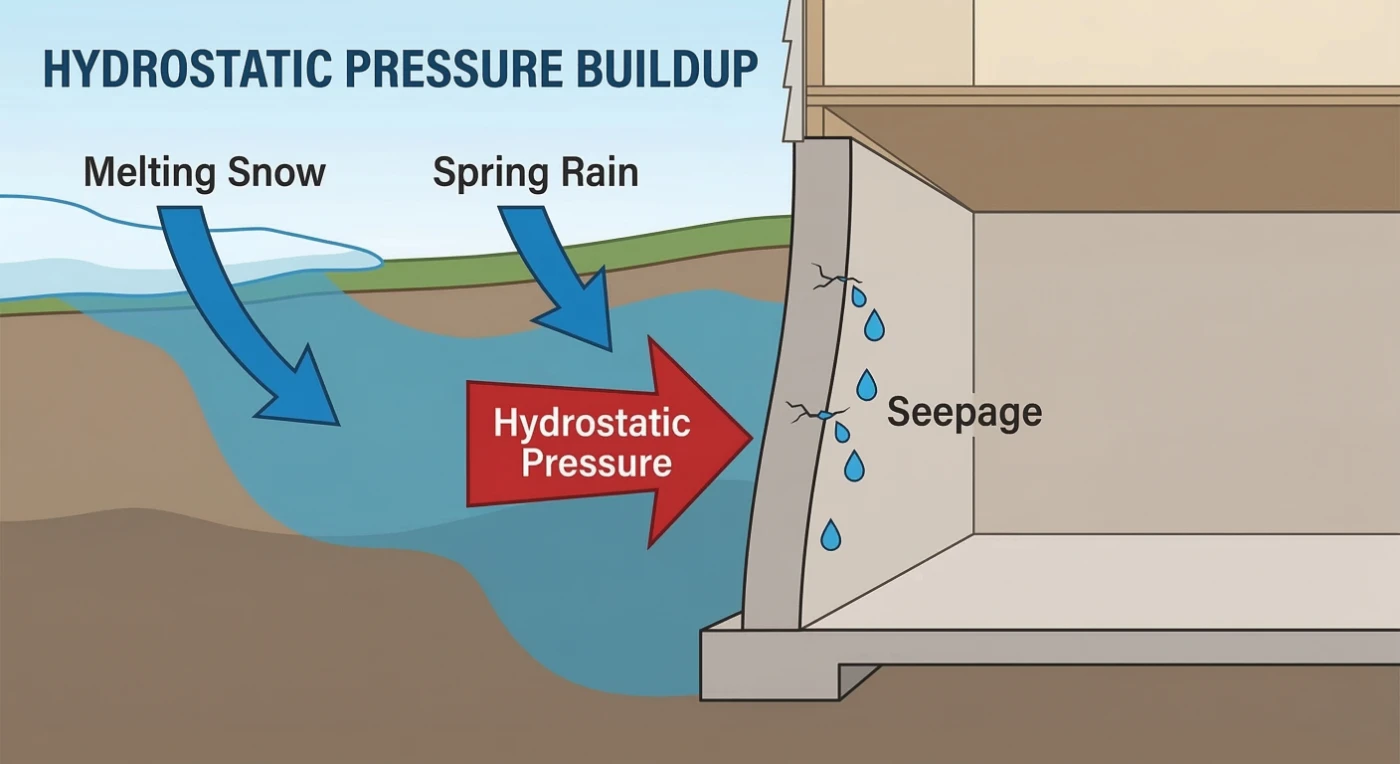 During the winter, frozen ground limits how well water can soak into the soil. When temperatures rise, melting snow and spring rain create a large volume of water in a short amount of time. That water often moves toward the lowest point around your home, which is usually the foundation.
